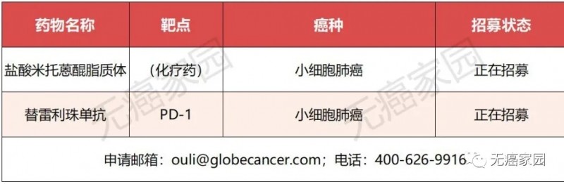目前正有非小细胞肺癌靶向药及小细胞肺癌PD-1、化疗药正在临床招募中,有意向者可咨询无癌家园医学部具体评估病情!