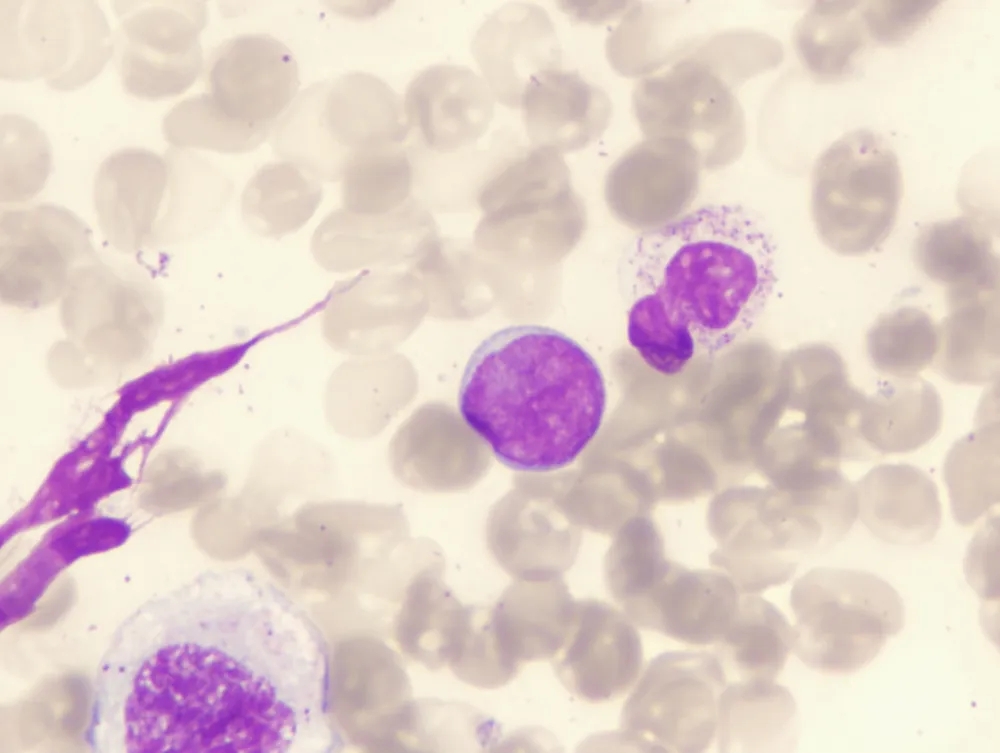 DLBCL 也可发生于皮肤、中枢神经系统(CNS)、骨、唾液腺、睾丸、女性生殖器、肺、肝、韦氏环等部位,据文献报道,有 11%-27% 的病例会出现骨髓受累,在外周血涂片中发现淋巴瘤细胞。