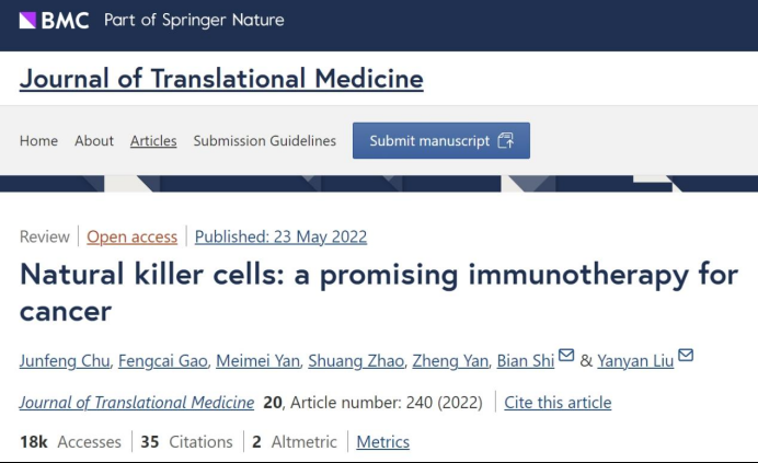 [3]Chu J,et al.Natural killer cells: a promising immunotherapy for cancer[J]. Journal of translational medicine, 2022, 20(1): 1-19.