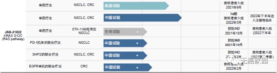 JAB-21822是加科思自主研发的KRAS G12C抑制剂。临床前研究数据表明,其可单独使用,治疗含KRAS G12C突变的实体瘤,同时在KRAS G12C抑制剂治疗发生耐药后,联合SHP2抑制剂有望有效克服和逆转KRAS抑制剂的耐药问题。