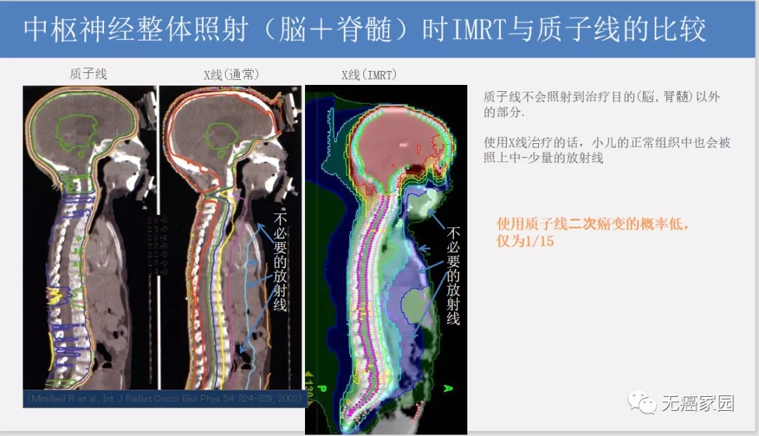 如果使用X线治疗,一定会发生脊椎骨的生长障碍(低身高、侧弯、变形等),使用质子线治疗就不会发生生长障碍。