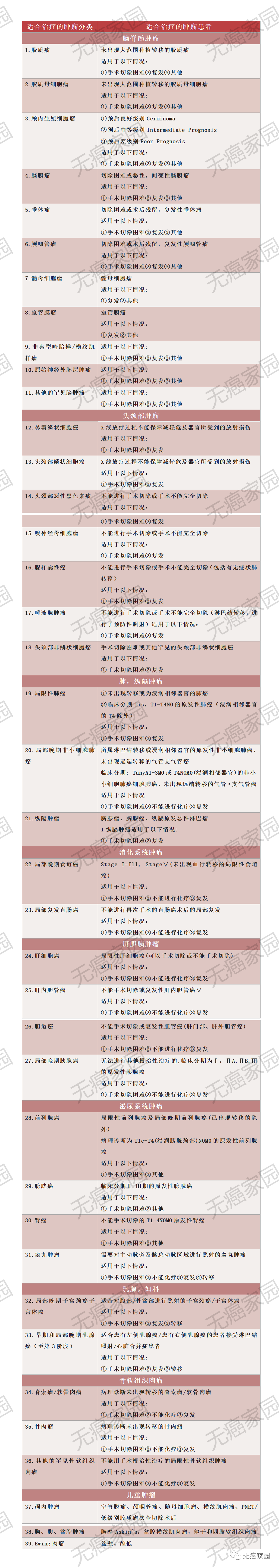下面这张表系统性地总结了目前质子治疗的全部适应症,请大家参考!