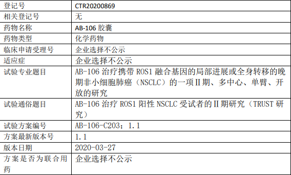 AB-106临床试验,AB-106胶囊治疗ROS1阳性非小细胞肺癌受试者的Ⅱ期研究(TRUST研究)
