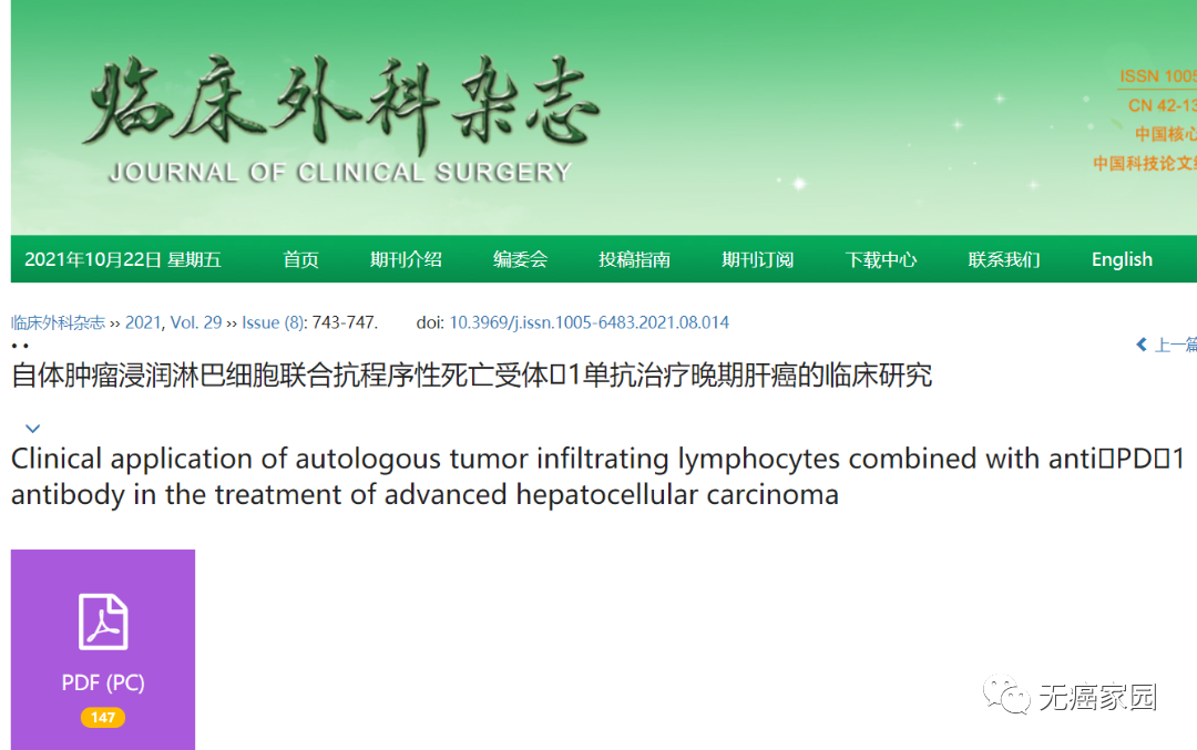 肝癌:全球首次报道自体TILs疗法技术临床疗效喜人
