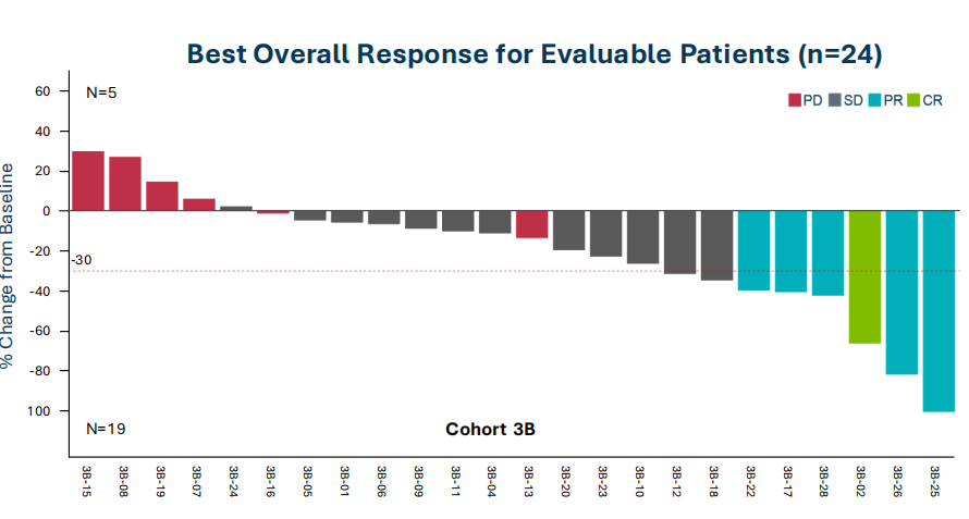 结果显示:在队列 3B为非小细胞肺癌组,患者在LN-145 单药一次性治疗后,